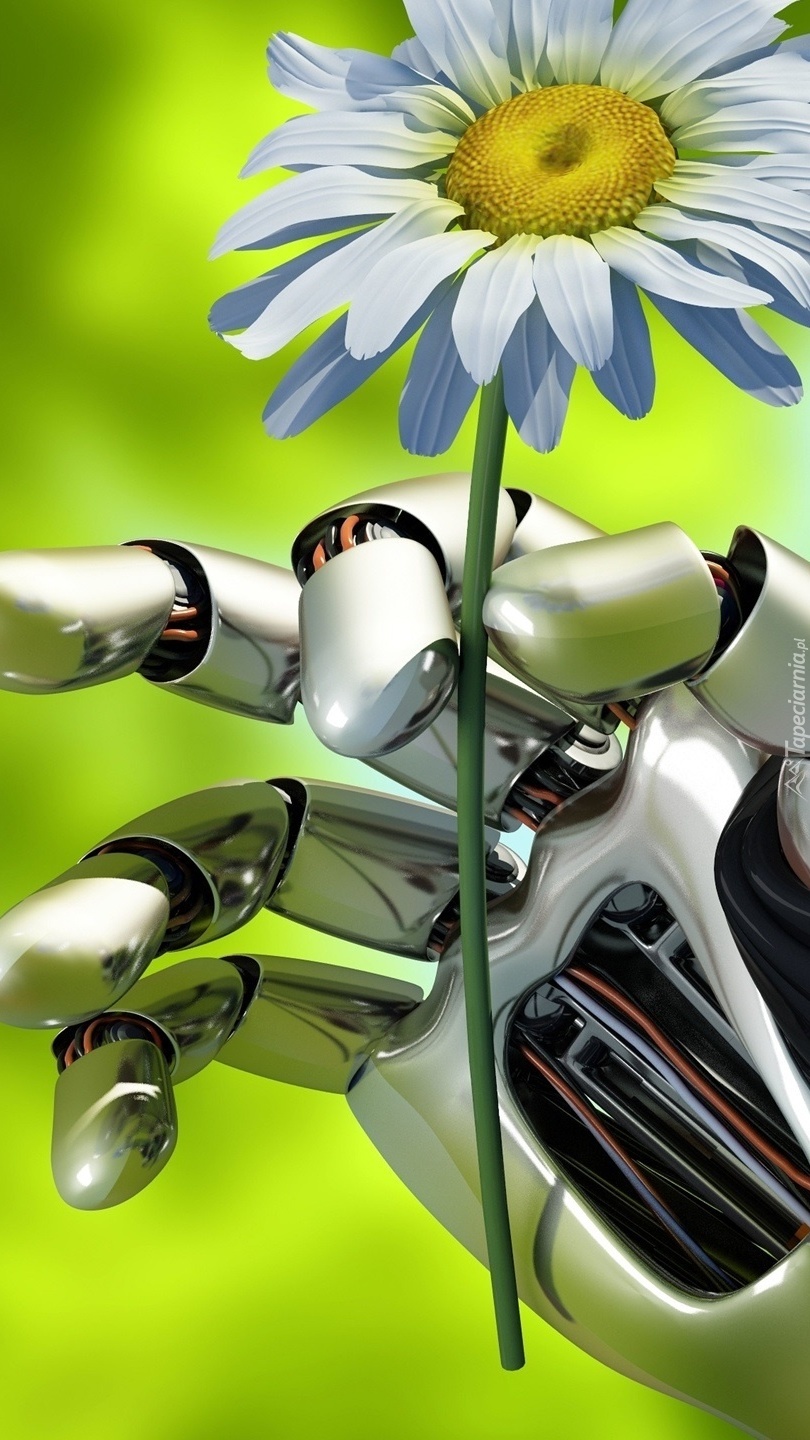Edytor tapety: Margerytka w ręce robota w 3D