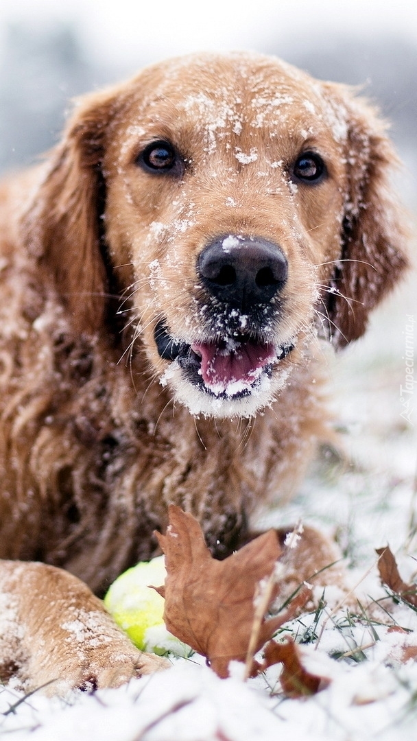Edytor tapety: Golden retriever zimą w śniegu