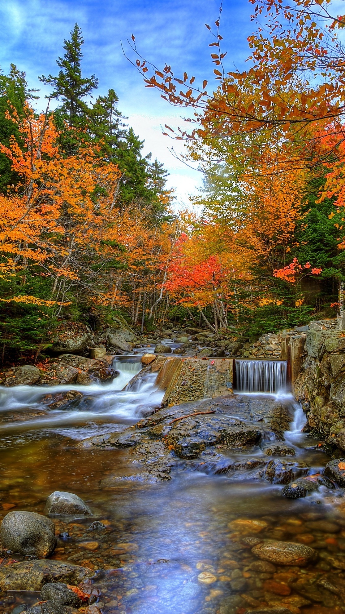 Edytor tapety: Jesienny las z kamienistą rzeką