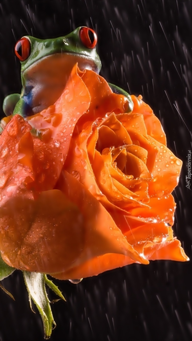 Edytor tapety: Róża z żabą w deszczu