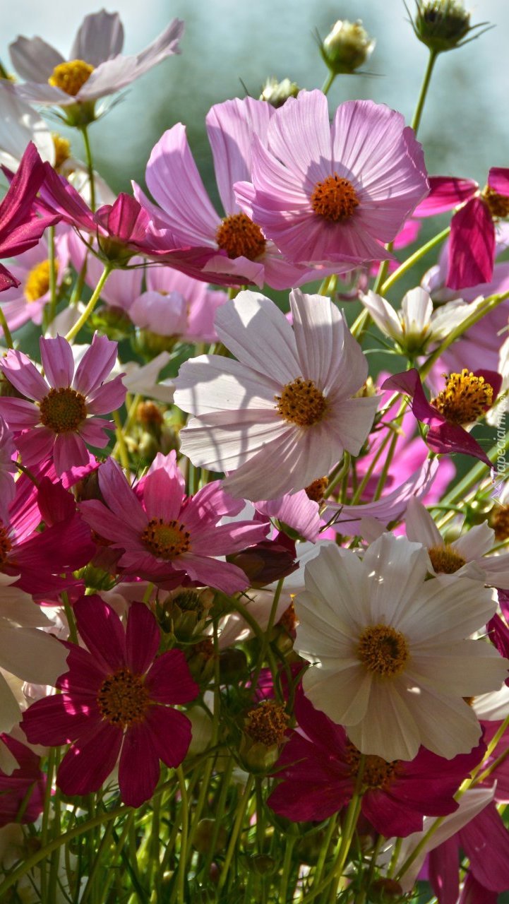 Edytor tapety: Kwiaty kosmei w różnych kolorach
