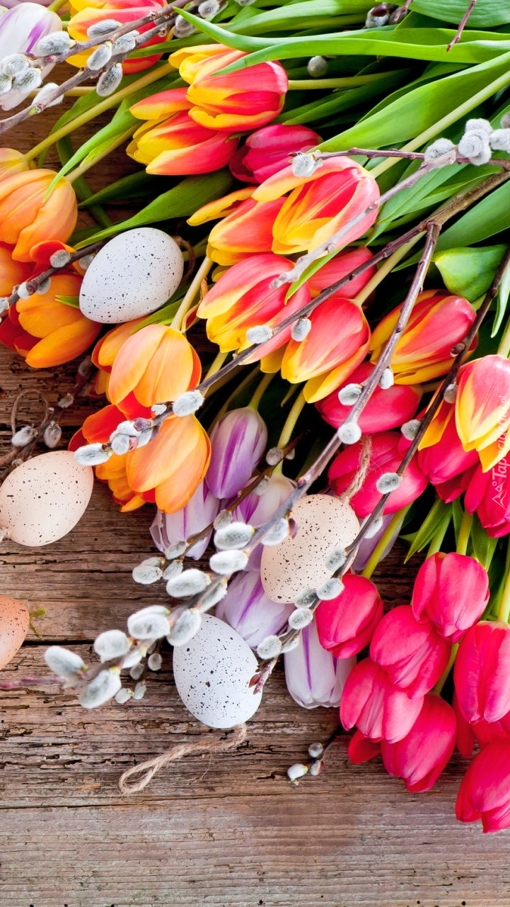 Edytor tapety: Tulipany z baziami i pisankami