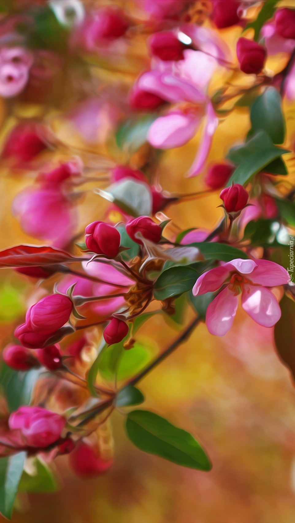 Edytor tapety: Drzewo owocowe o różowych kwiatach