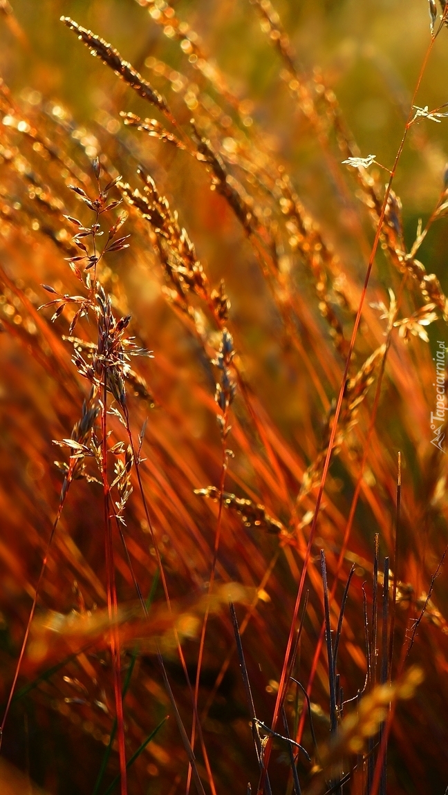 Edytor tapety: Słońcem przetykane źdźbła trawy na łące