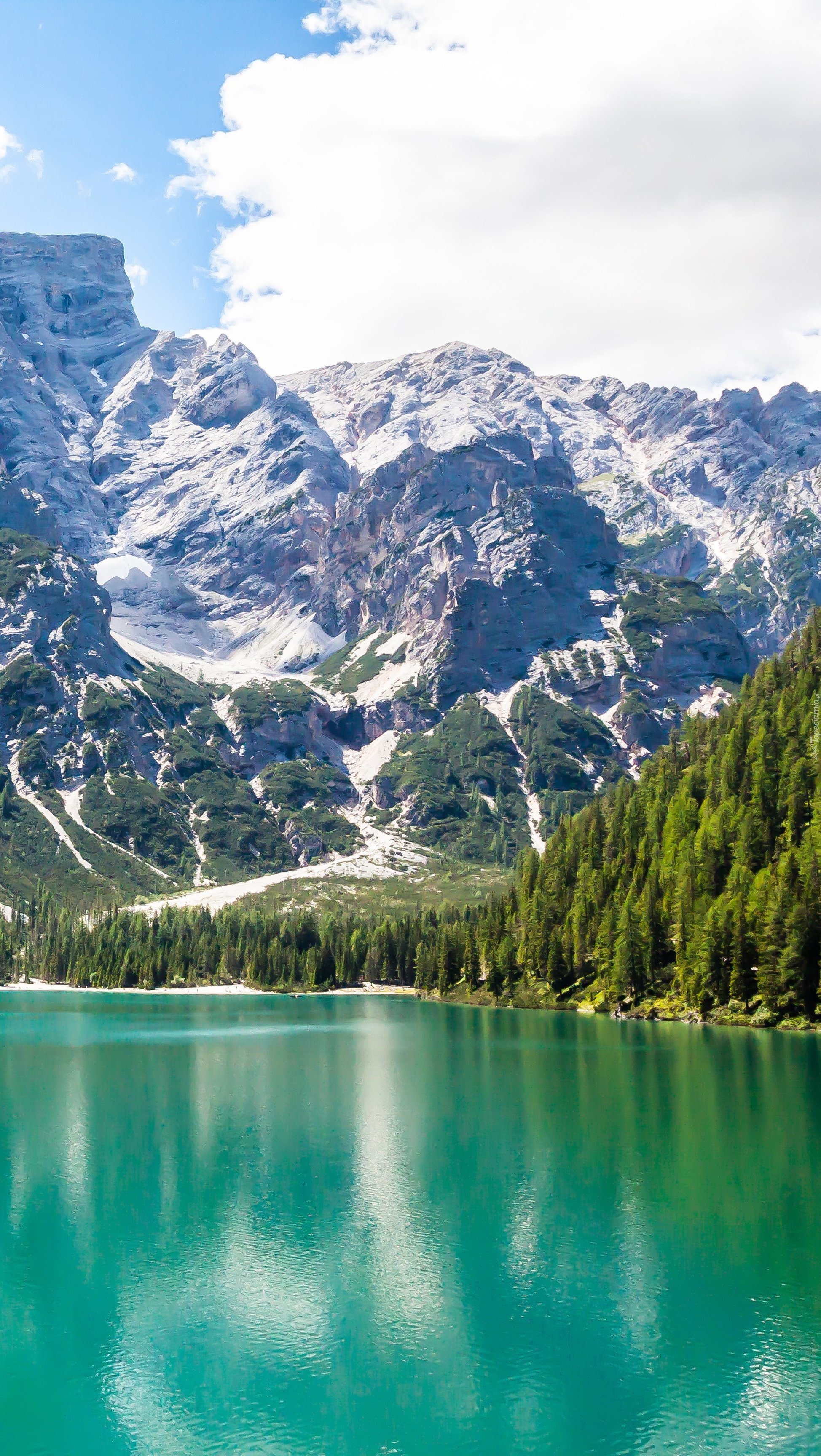 Edytor tapety: Jezioro pod lasem u podnóża gór