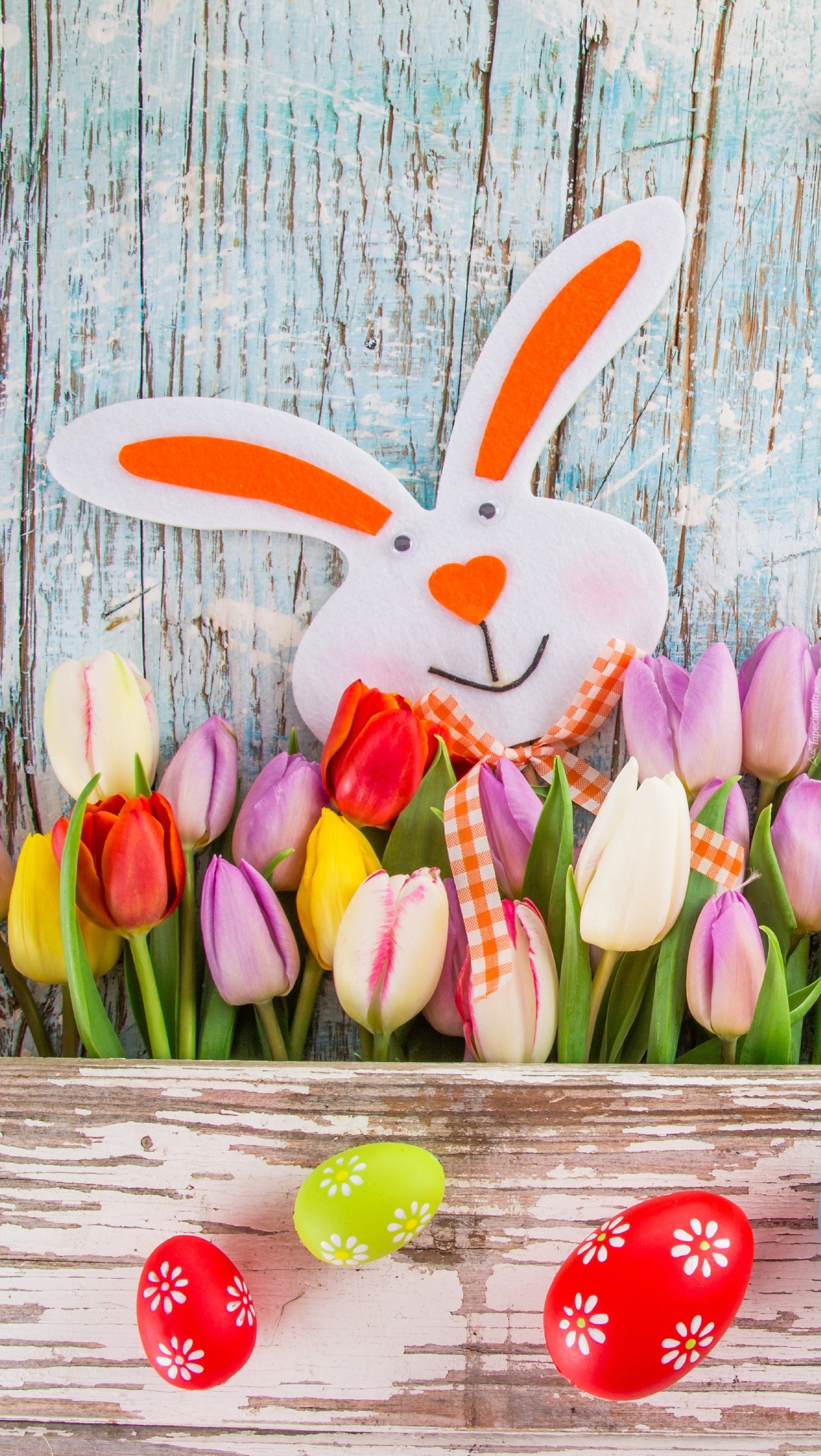 Edytor tapety: Zajączek wielkanocny wśród tulipanów