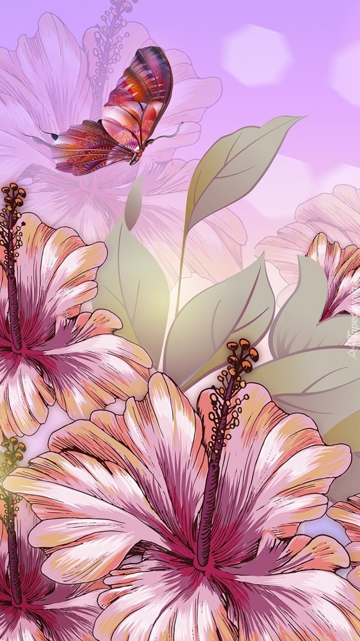 Edytor tapety: Motyl krążący nad hibiskusem