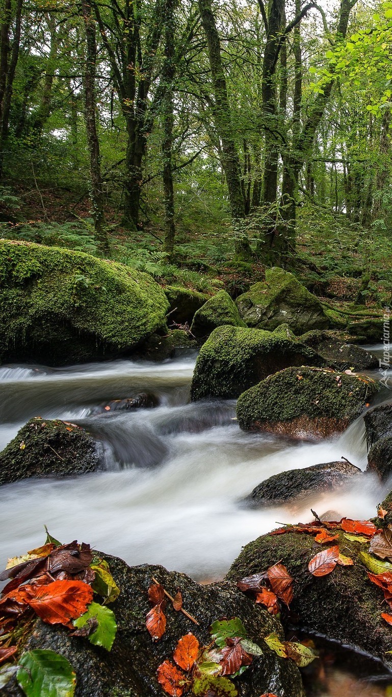 Edytor tapety: Jesienne liście na rzecznych kamieniach