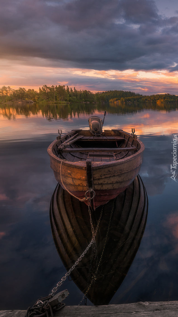 Edytor tapety: Łódka odbijająca się w jeziorze