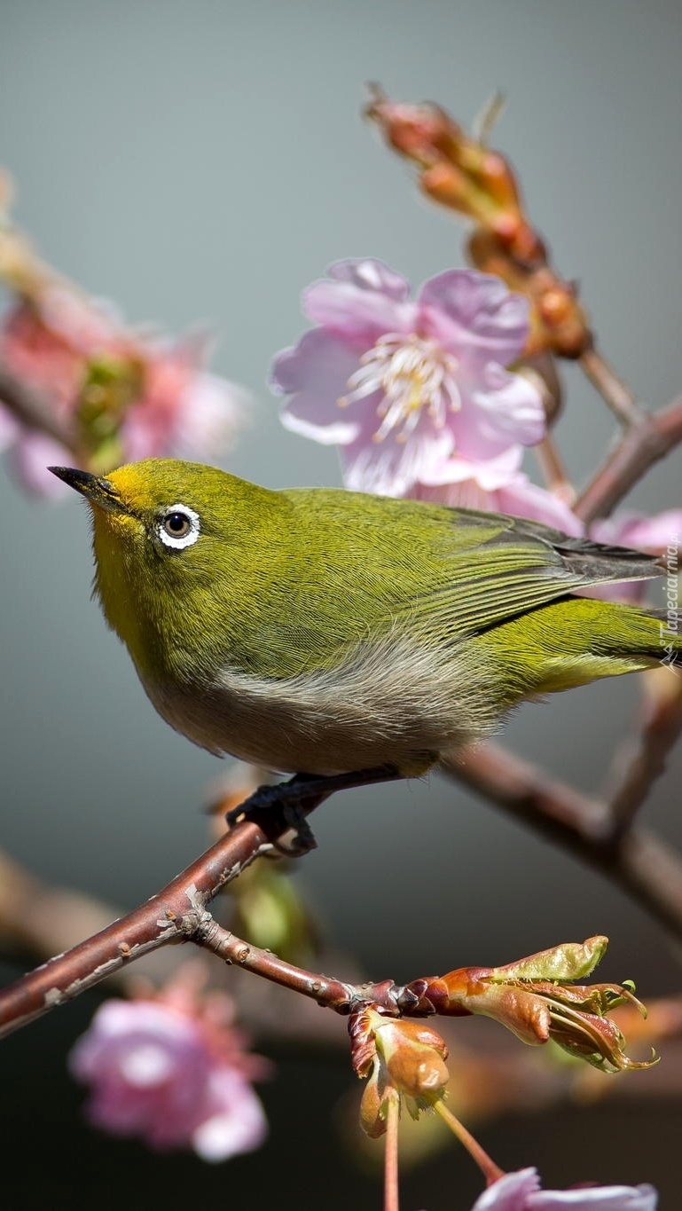 Edytor tapety: Szlarnik na kwiatowej gałązce wiosennej