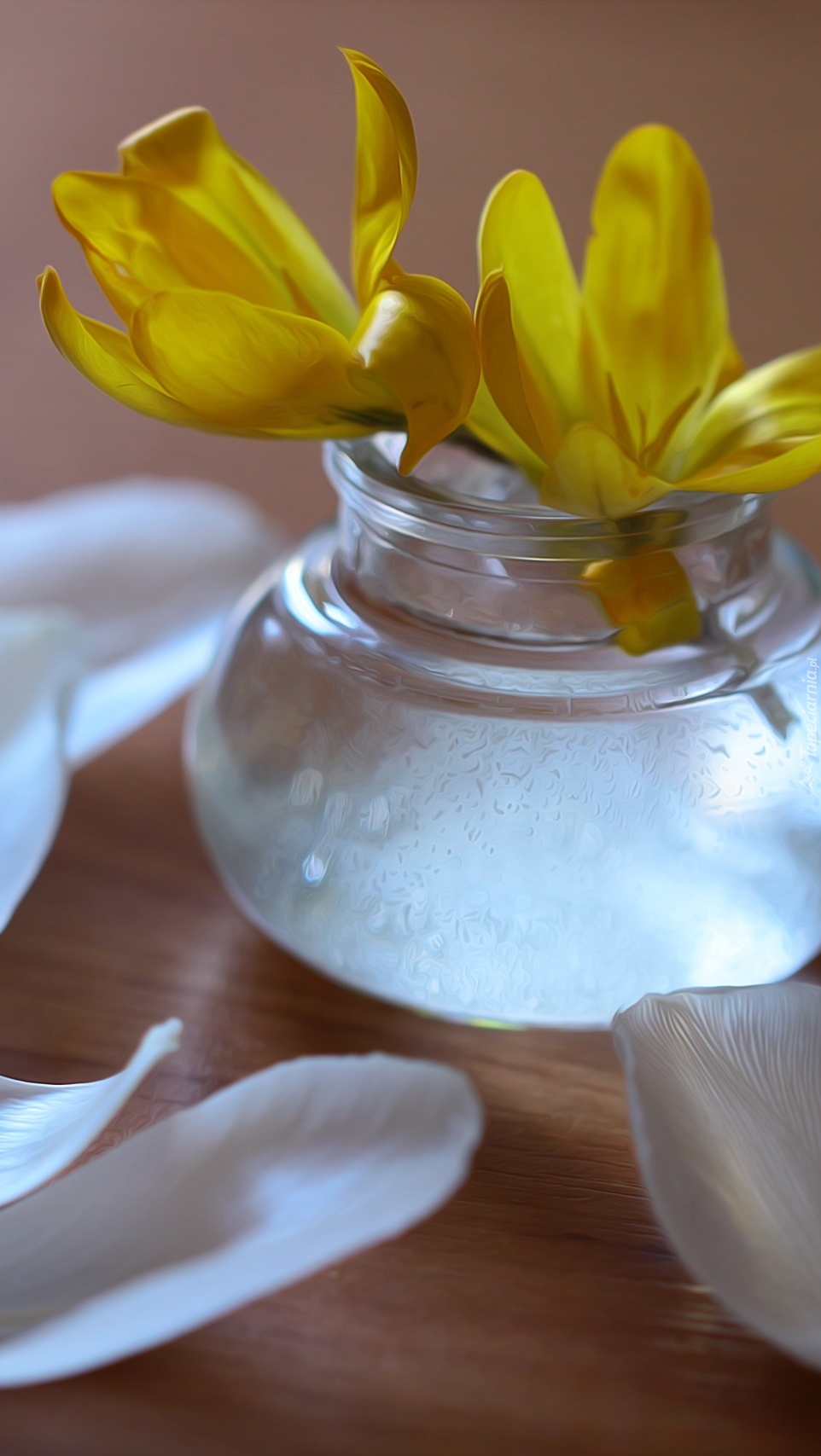 Edytor tapety: Żółte krokusy w wazoniku