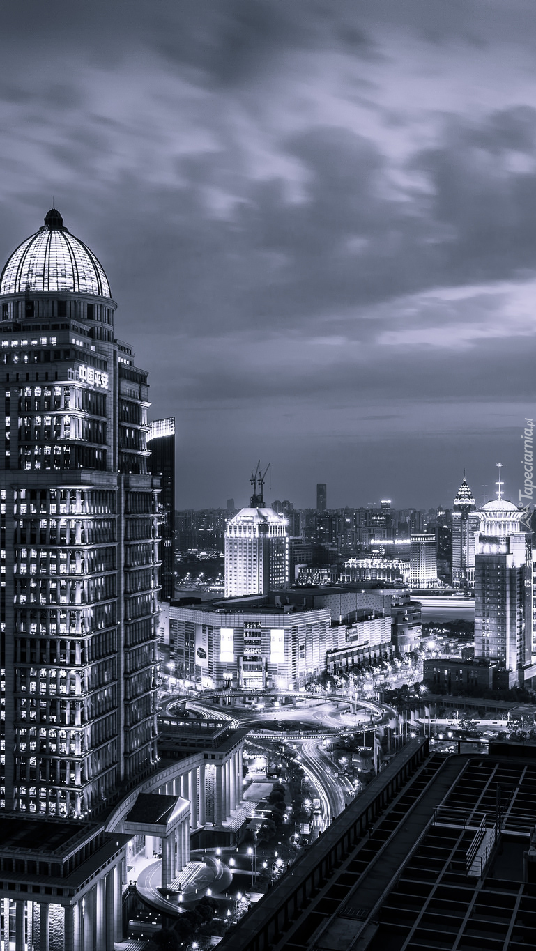 Edytor tapety: Czarno-białe drapacze chmur w Szanghaju