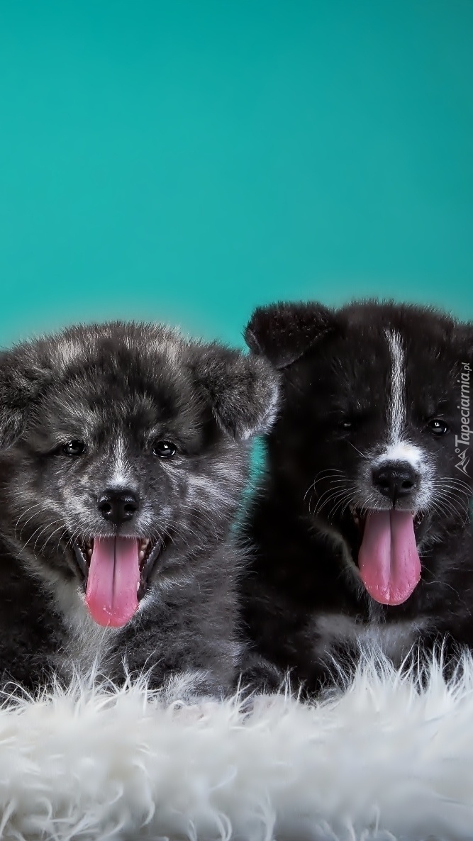 Edytor tapety: Dwa ziejące psiaki na białym futerku