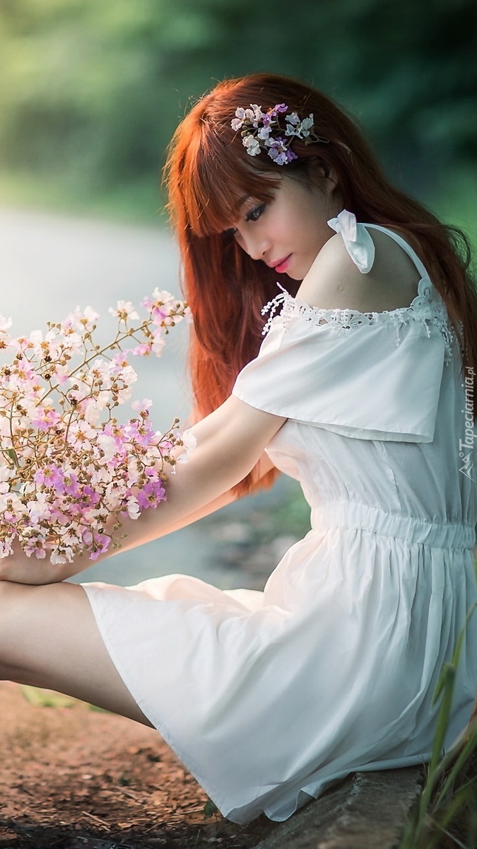 Edytor tapety: Dziewczyna z bukietem kwiatów