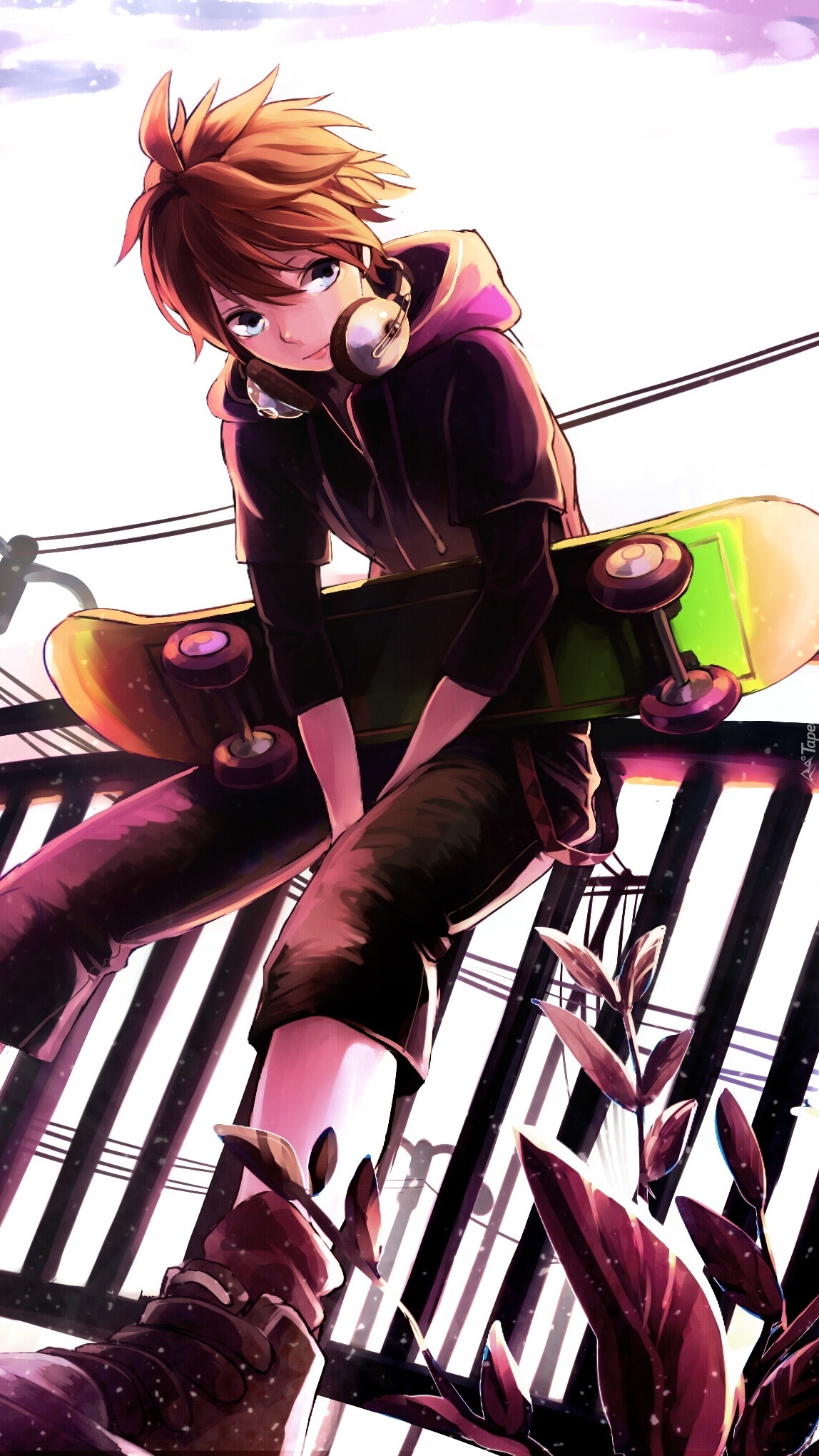 Edytor tapety: Kagamine Len z deskorolką i słuchawkami