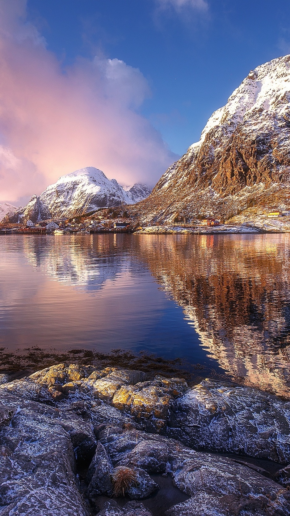 Edytor tapety: Zimowe góry odbite w jeziorze