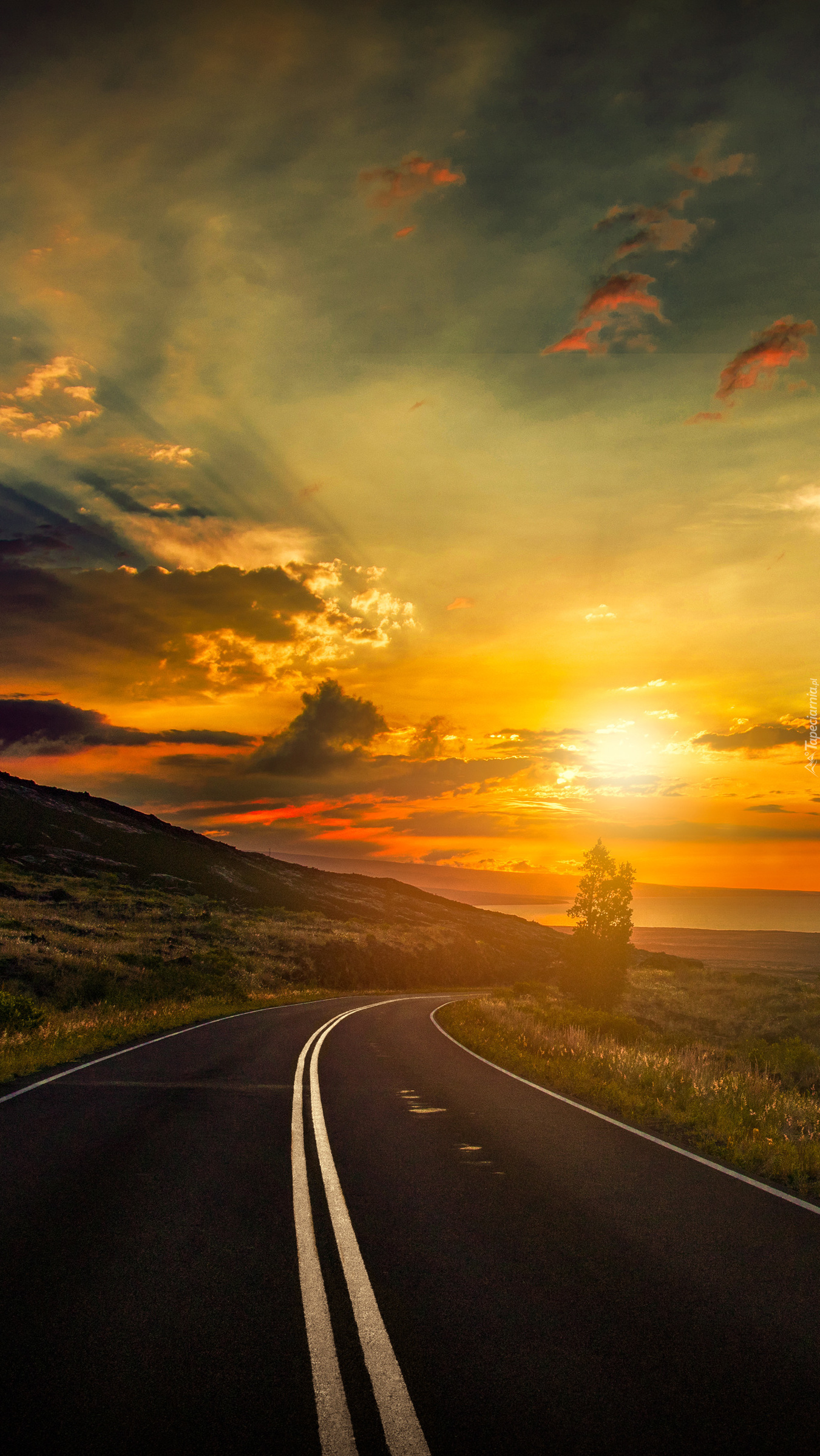 Edytor tapety: Słońce oświetlające drogę