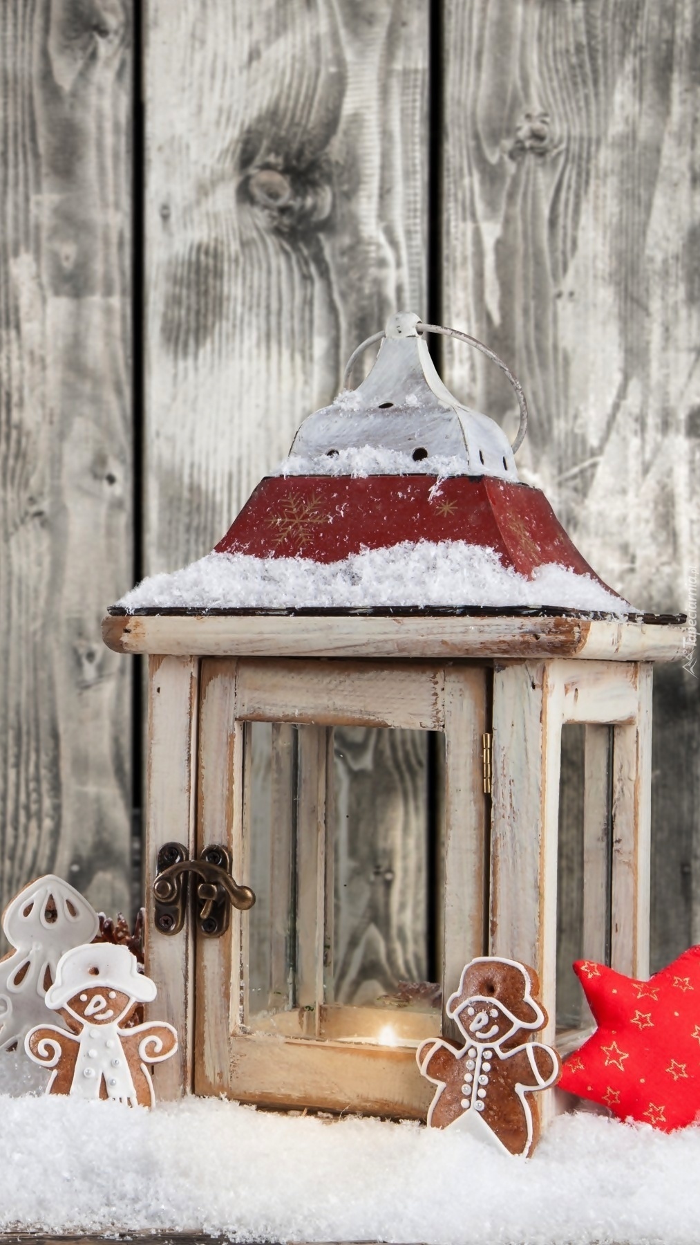 Edytor tapety: Piernikowe ozdoby świąteczne obok lampionu