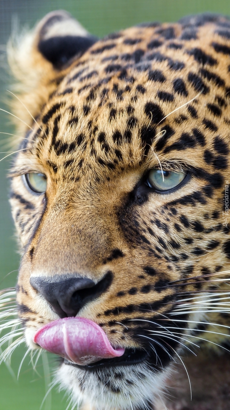 Edytor tapety: Lampart oblizuje się po jedzeniu