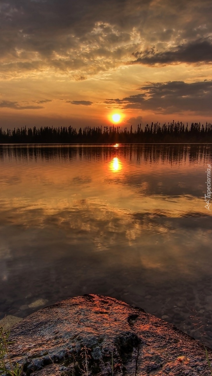 Edytor tapety: Słoneczny zachód przegląda się w jeziorze