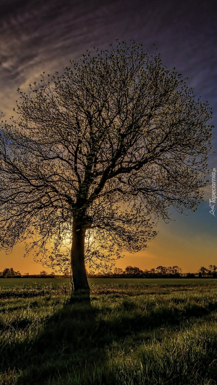 Edytor tapety: Drzewo na polu o zachodzie słońca