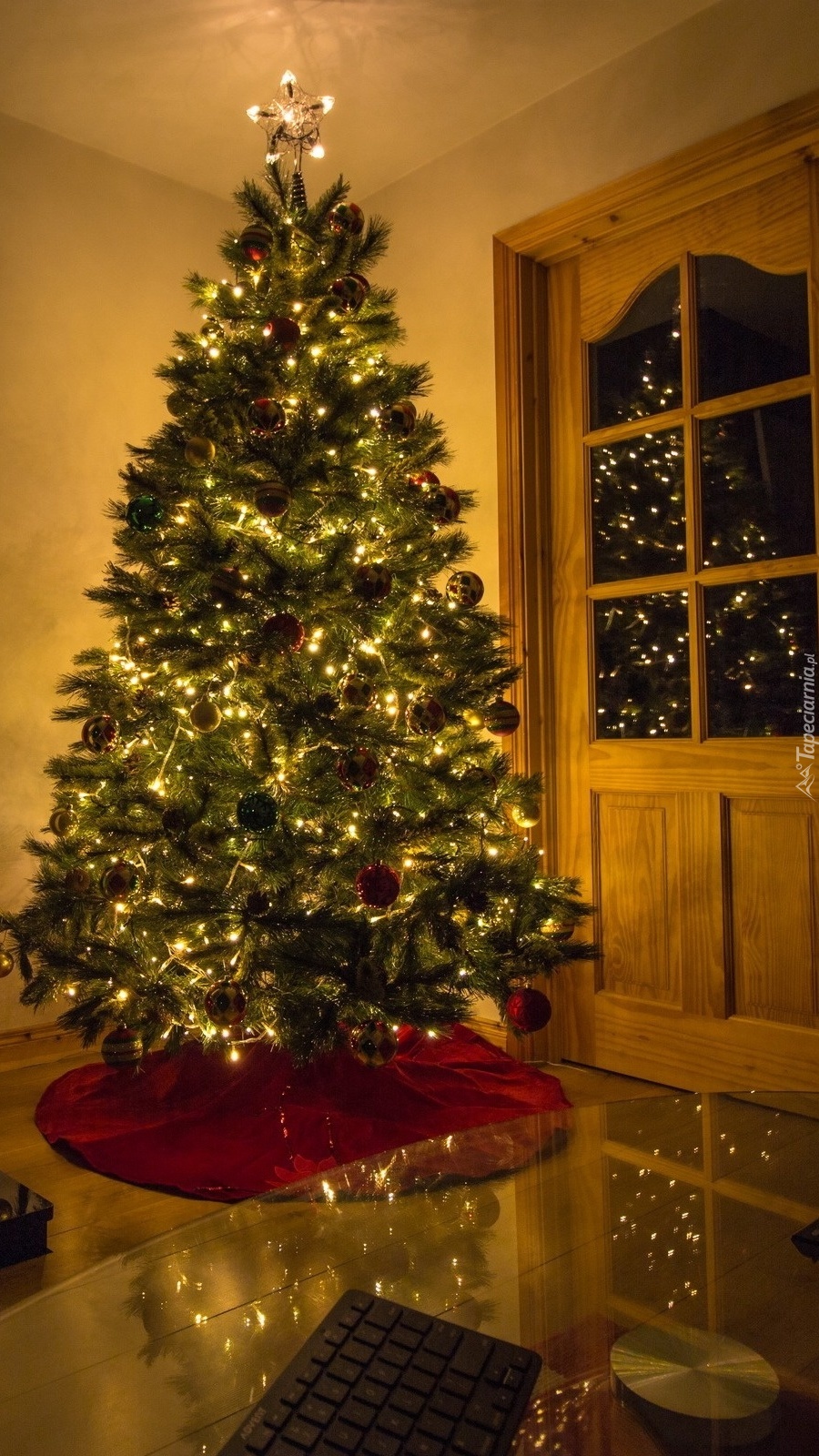 Edytor tapety: Choinka pod drzwiami w pokoju
