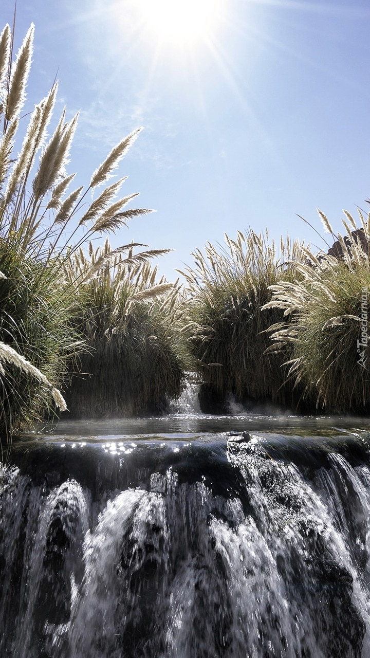 Edytor tapety: Kaskada na tle wysokich traw
