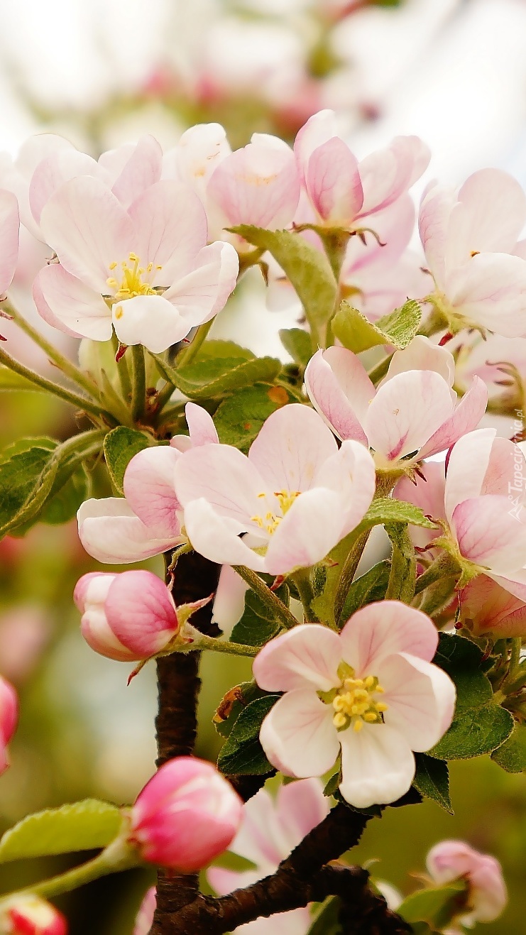 Edytor tapety: Gałązki kwitnących kwiatów drzewa owocowego