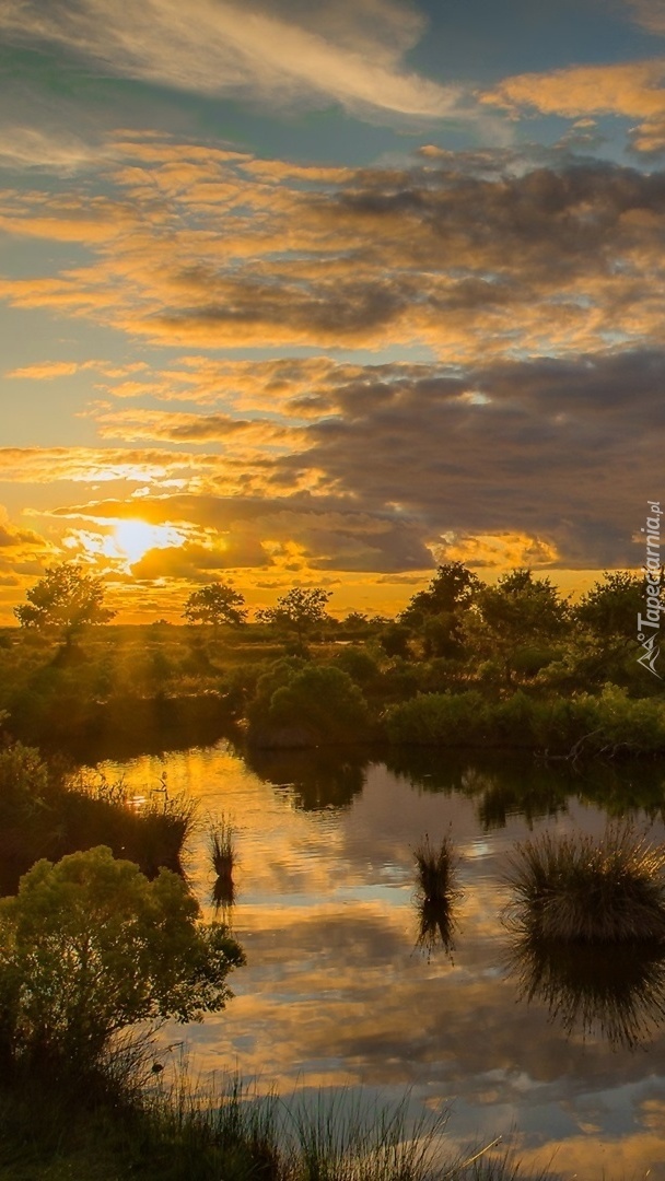 Edytor tapety: Słońce zachodzące nad stawem