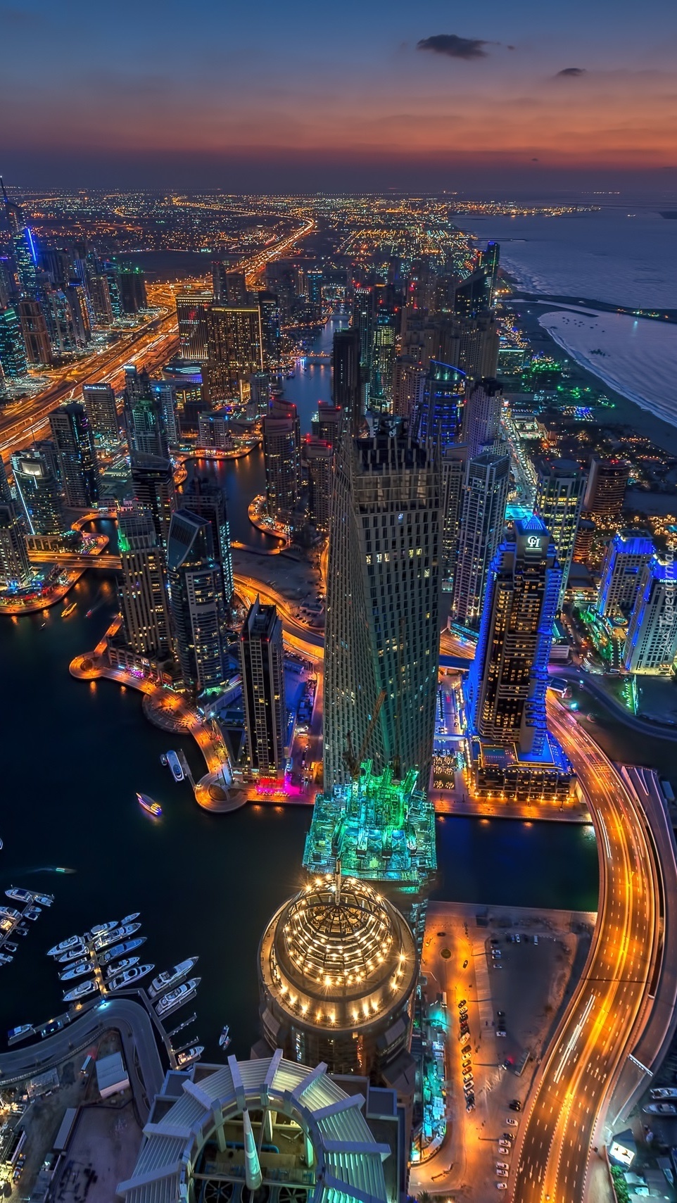 Edytor tapety: Panorama Dubaju z lotu ptaka nocą