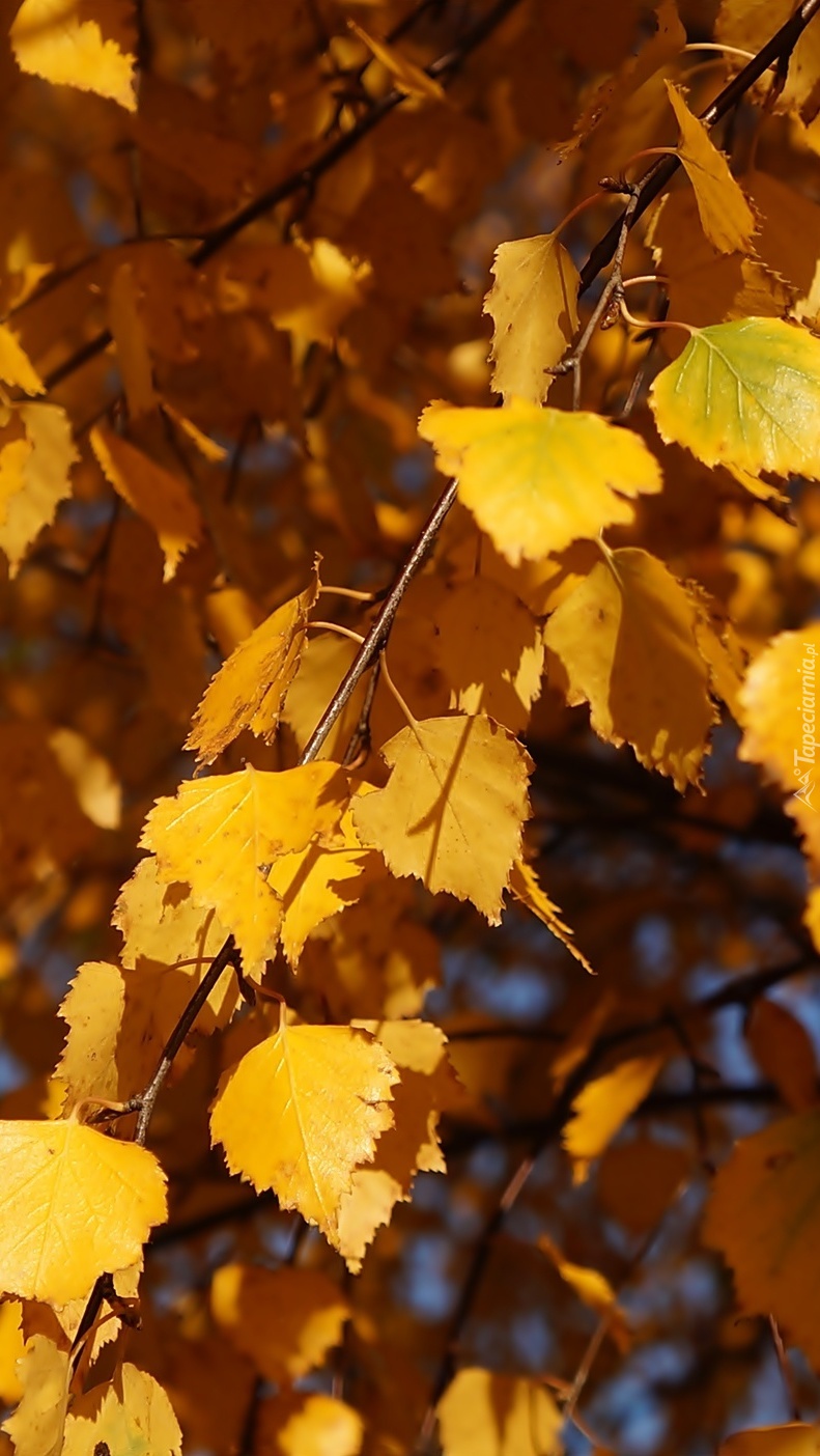 Edytor tapety: Żółte jesienne liście brzozy