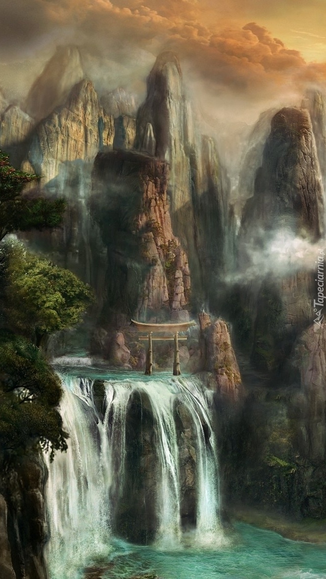 Edytor tapety: Wodospad na skałach