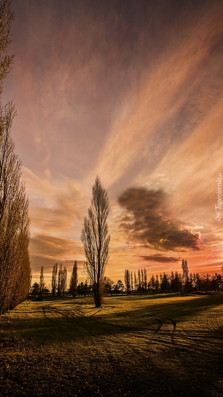 Edytor tapety: Zachód słońca nad łąką porośniętą drzewami