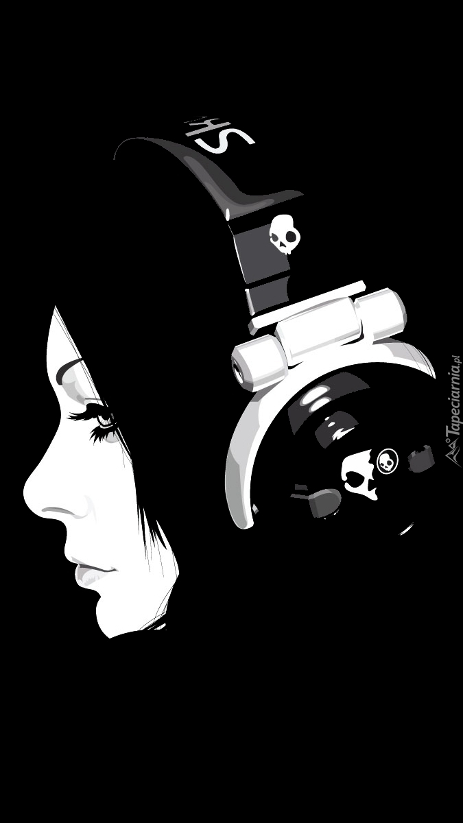 Edytor tapety: Dziewczyna z słuchawkami na czarnym tle