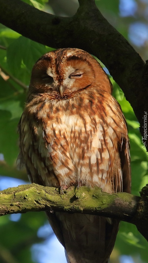 Edytor tapety: Puszczyk zasnął na drzewie