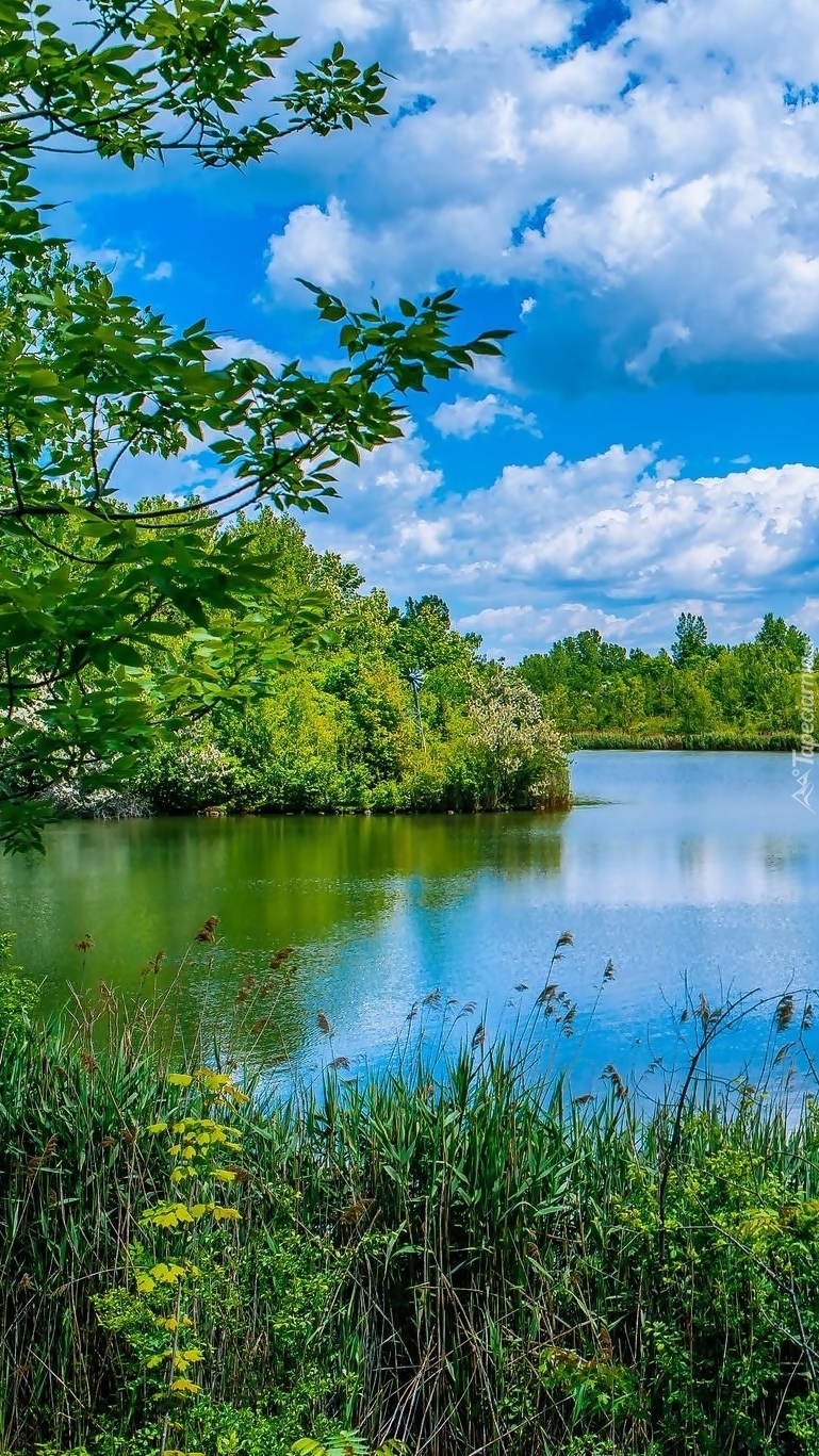 Edytor tapety: Chmury płynące po niebie nad rzeką