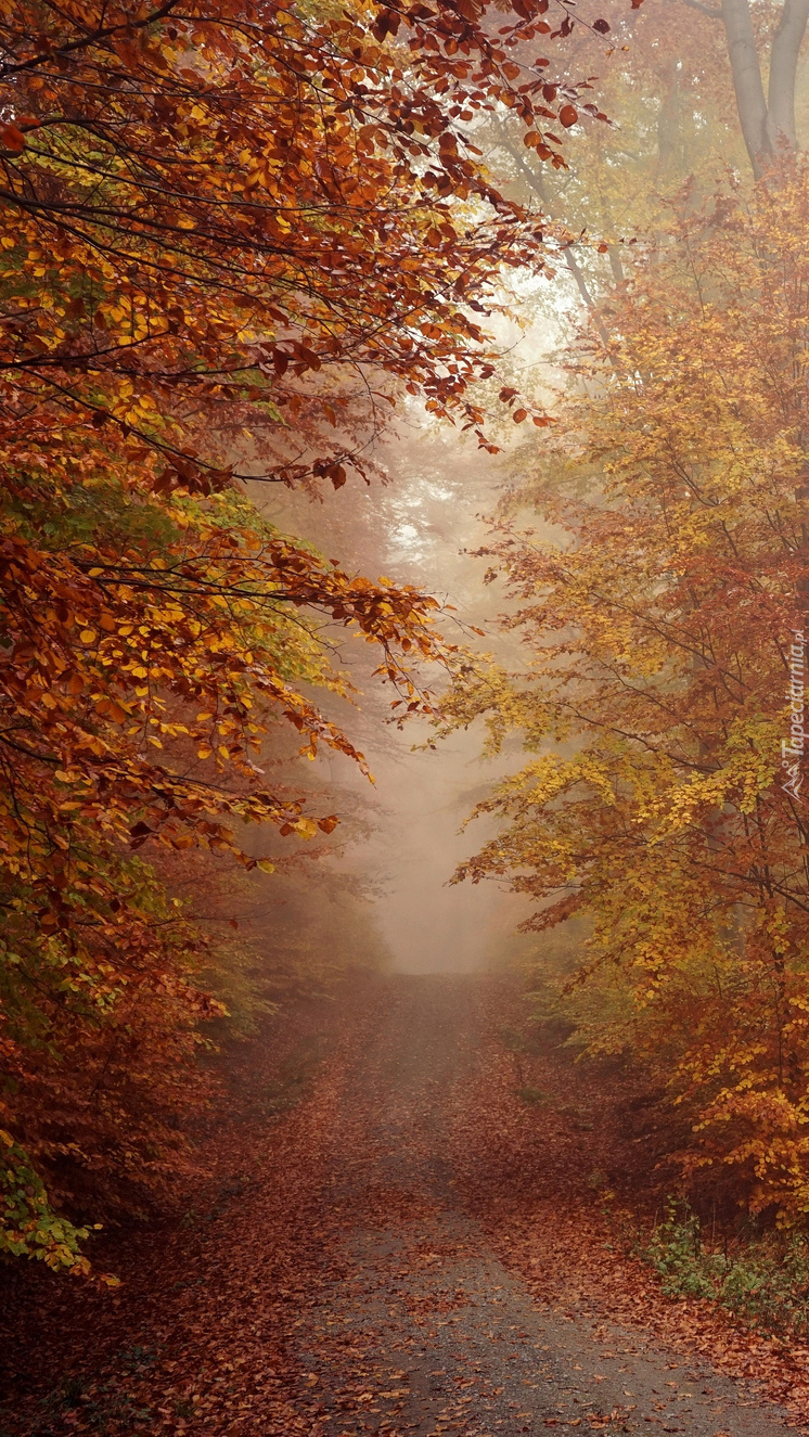 Edytor tapety: Leśna droga we mgle jesienią