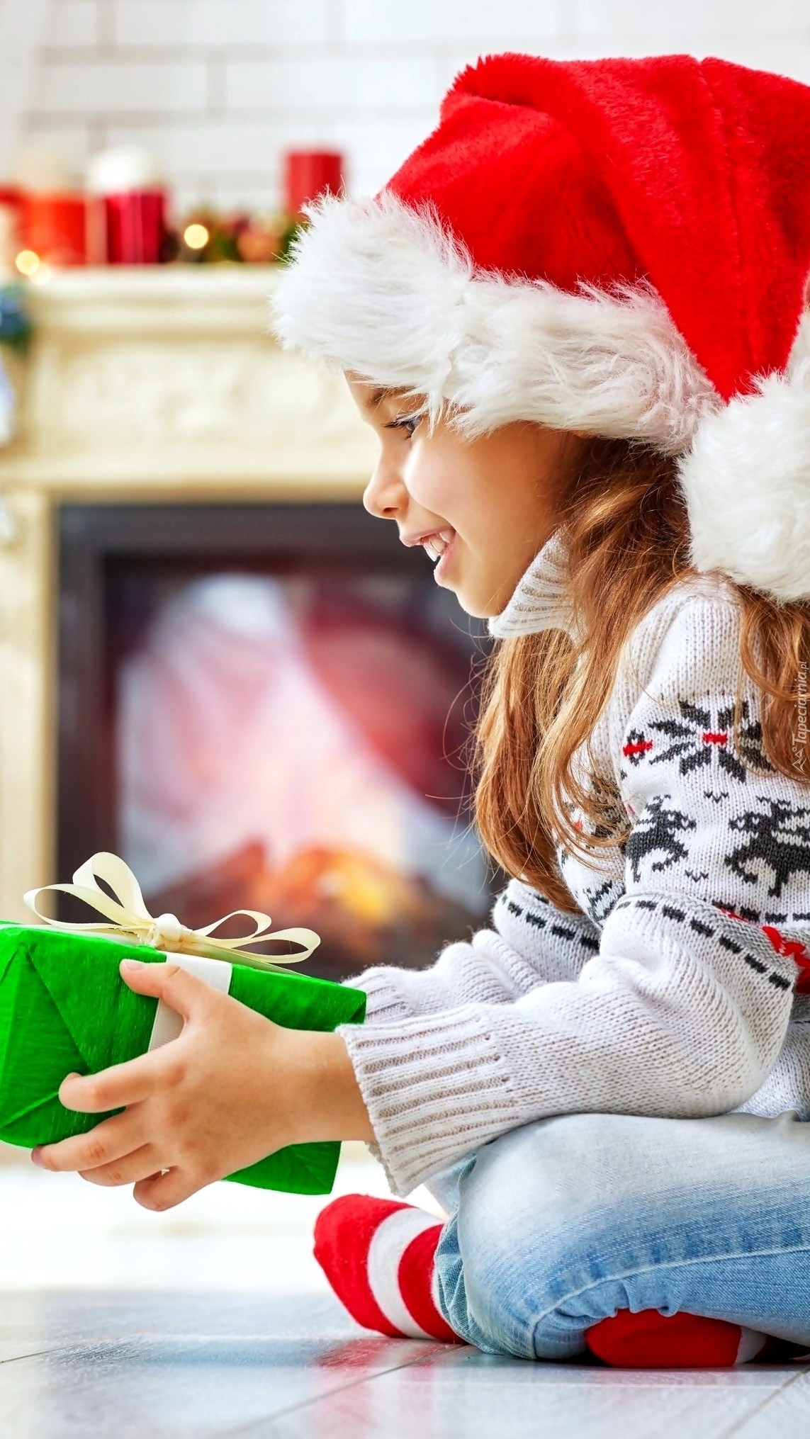 Edytor tapety: Dziewczynka w mikołajowej czapce