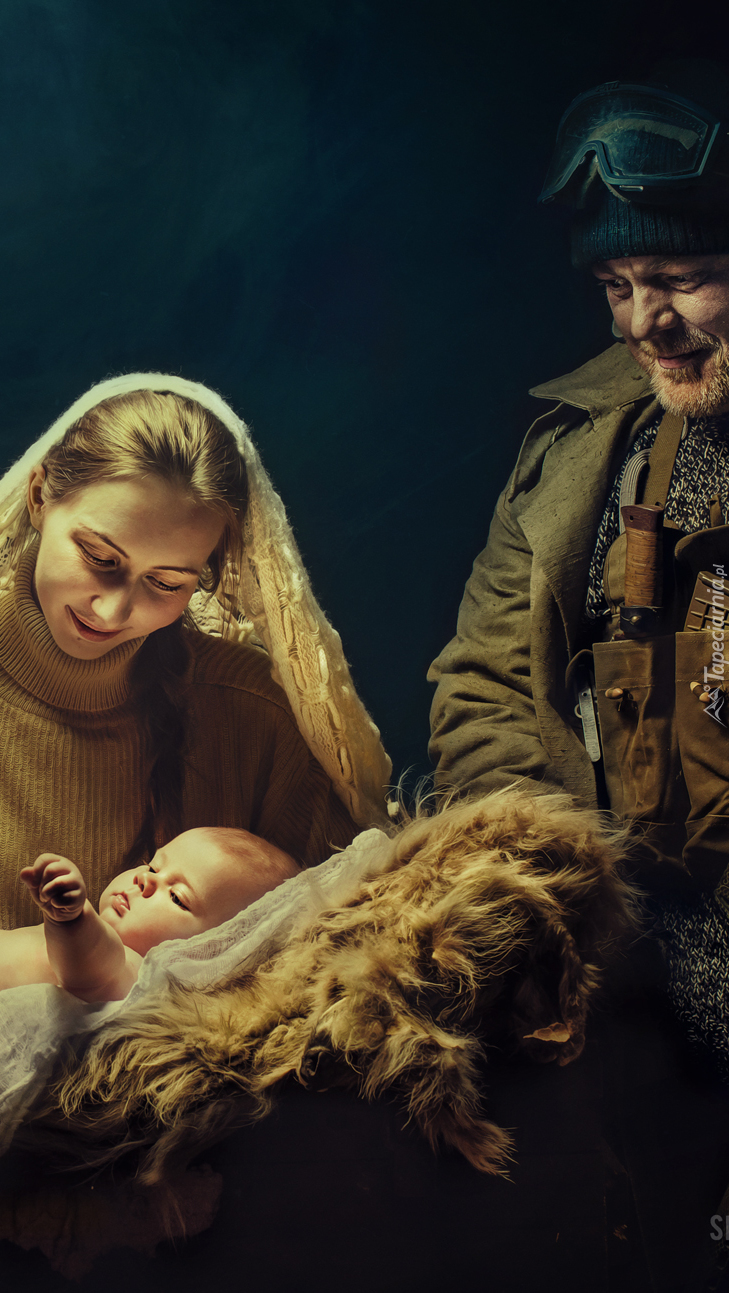 Edytor tapety: Kobieta z niemowlakiem i żołnierz