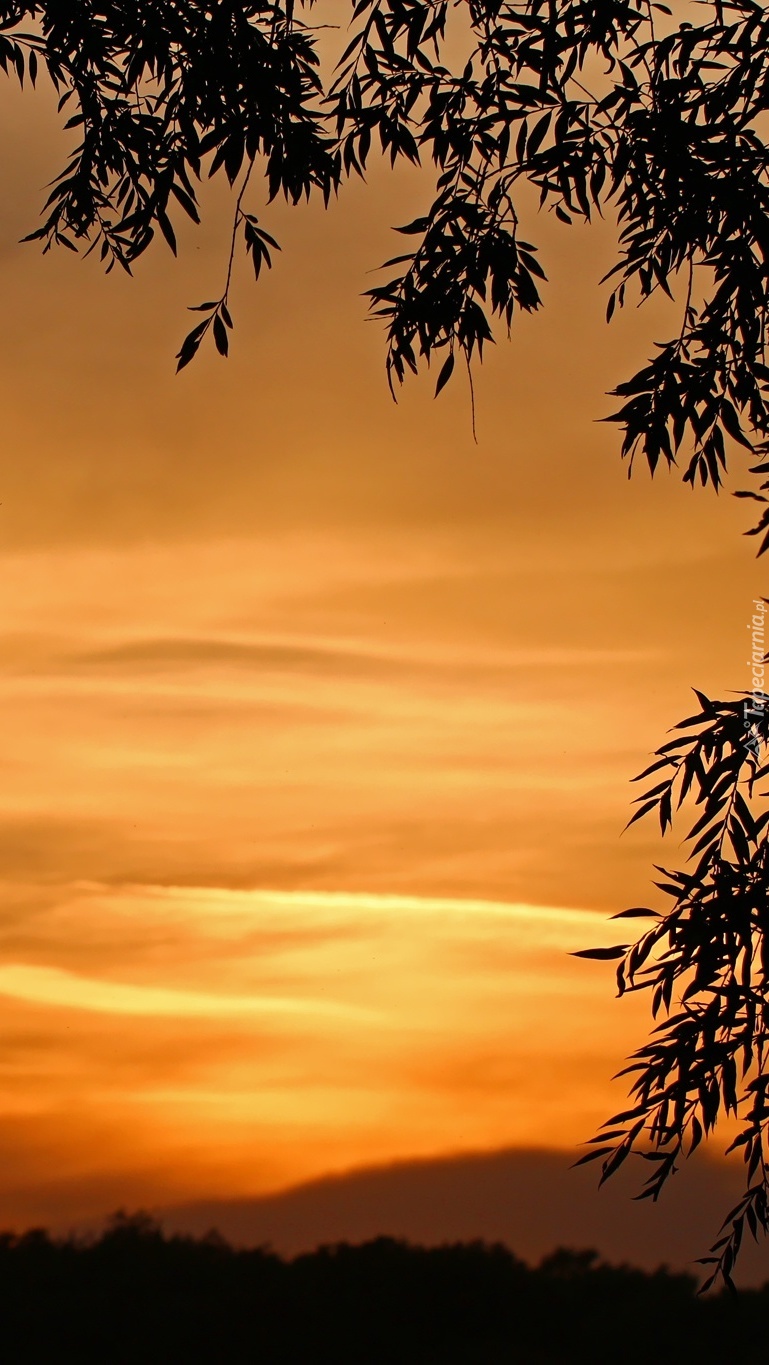 Edytor tapety: Liście na tle nieba wieczorową porą