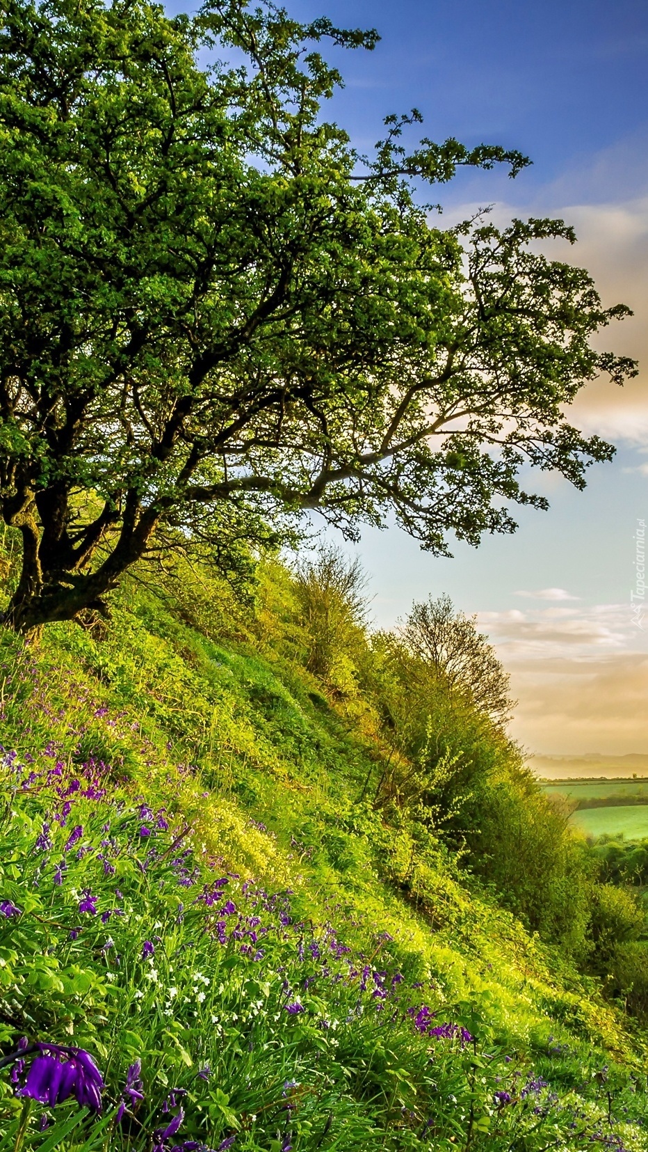 Edytor tapety: Drzewo na wzgórzu letnią porą