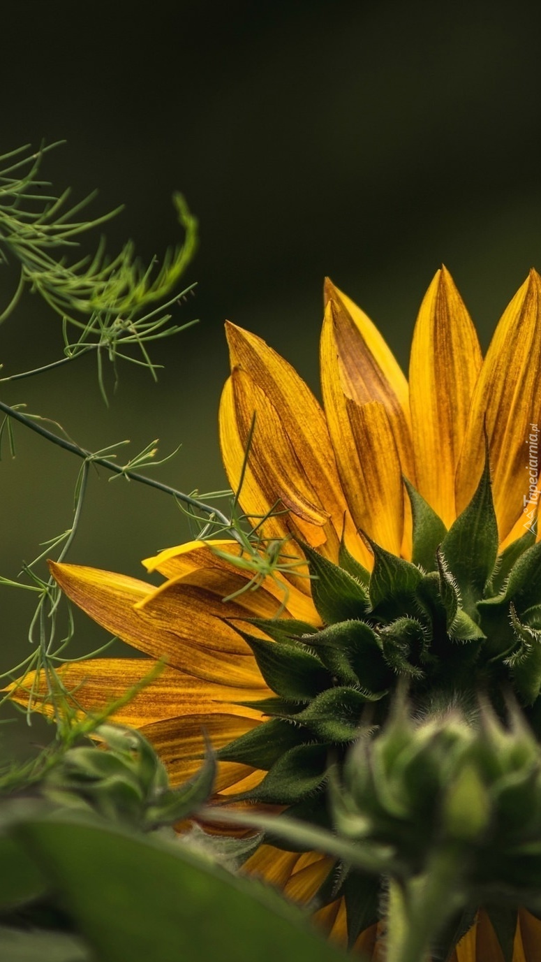Edytor tapety: Kwitnący słonecznik odwrócony tyłem