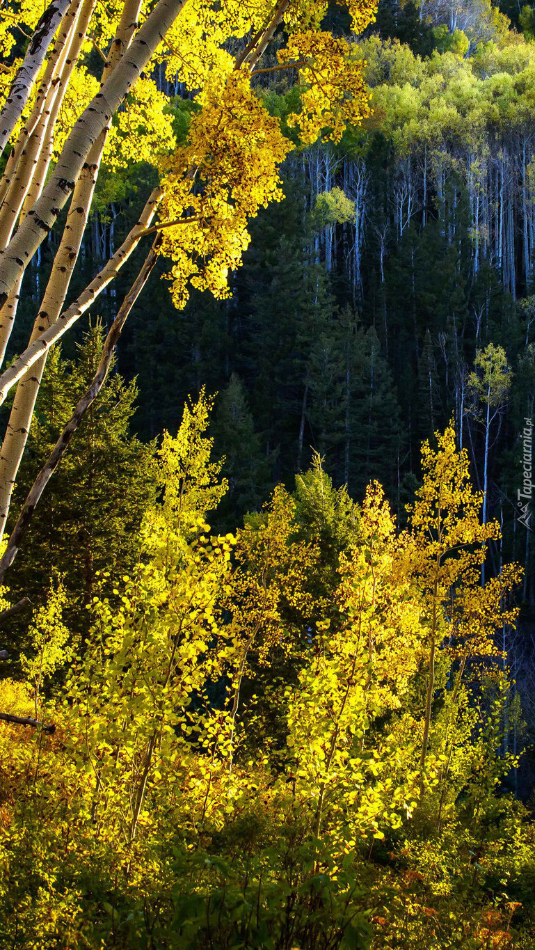 Edytor tapety: Jesienne brzozy w lesie