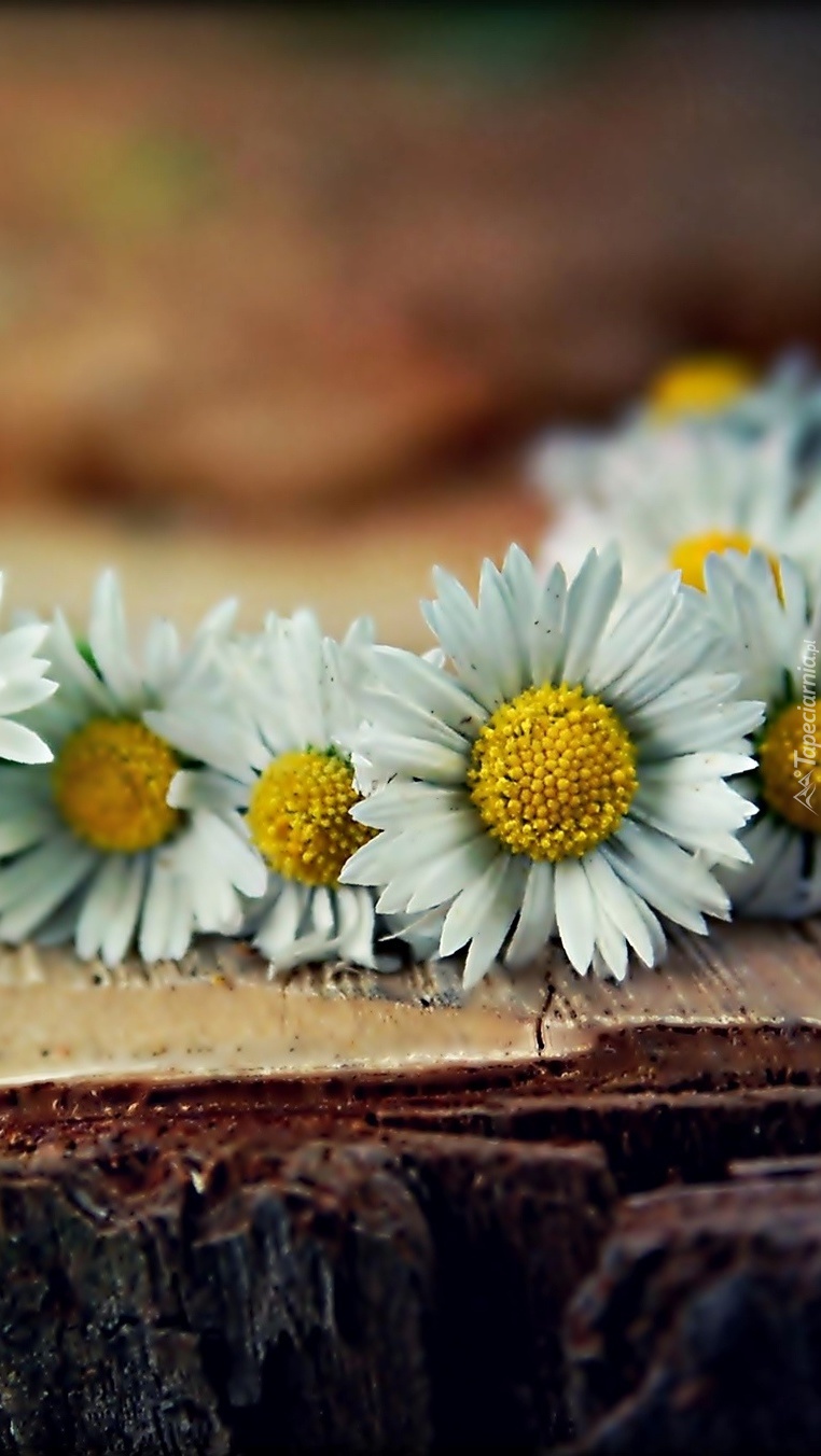 Edytor tapety: Białe stokrotki na deskach