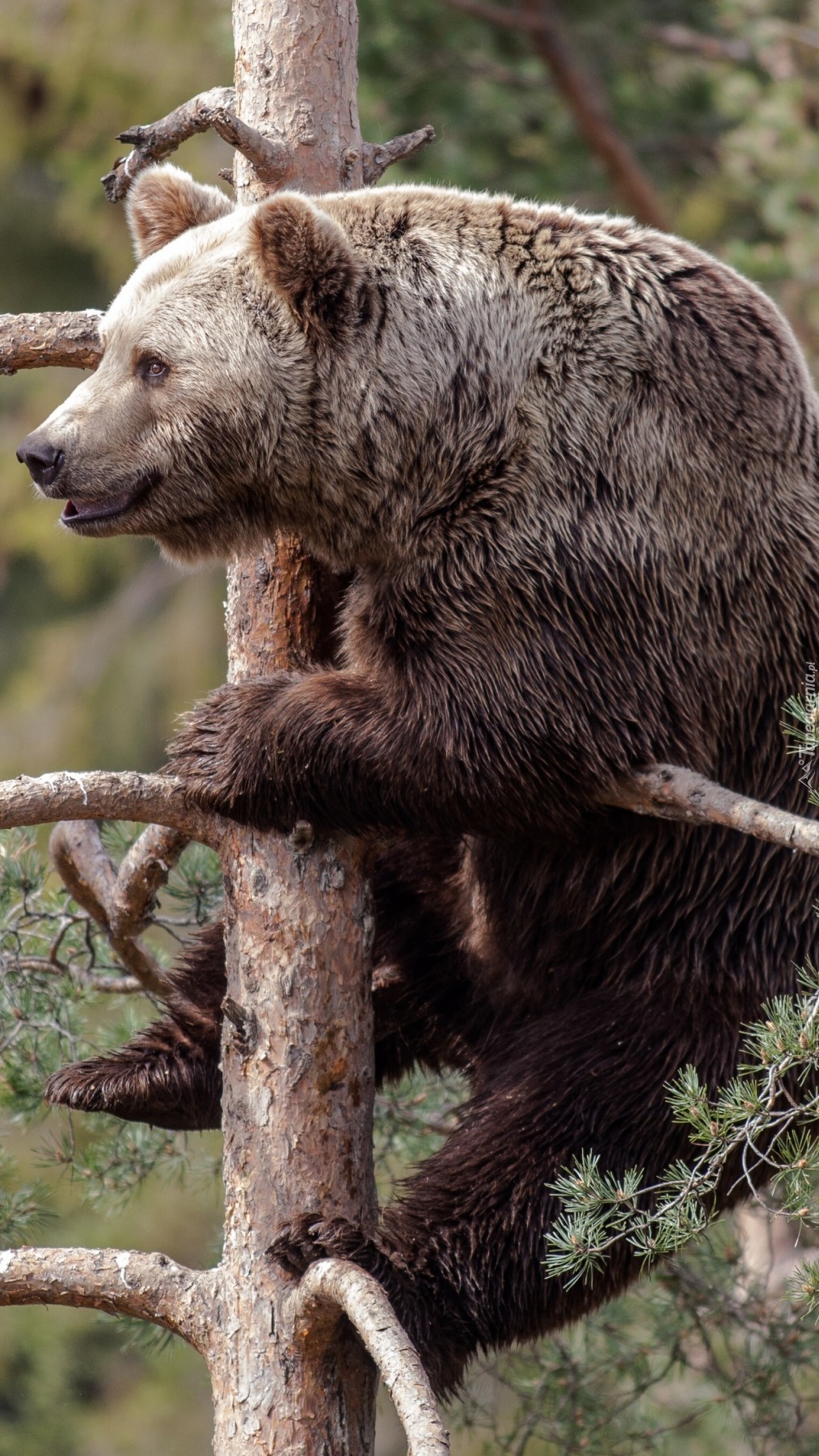 Edytor tapety: Niedźwiedź obserwujący z drzewa