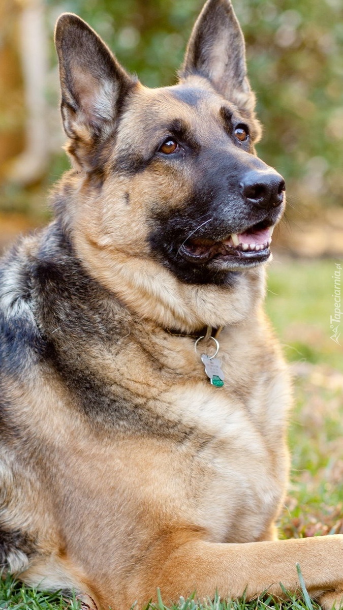 Edytor tapety: Owczarek niemiecki odpoczywający na trawie