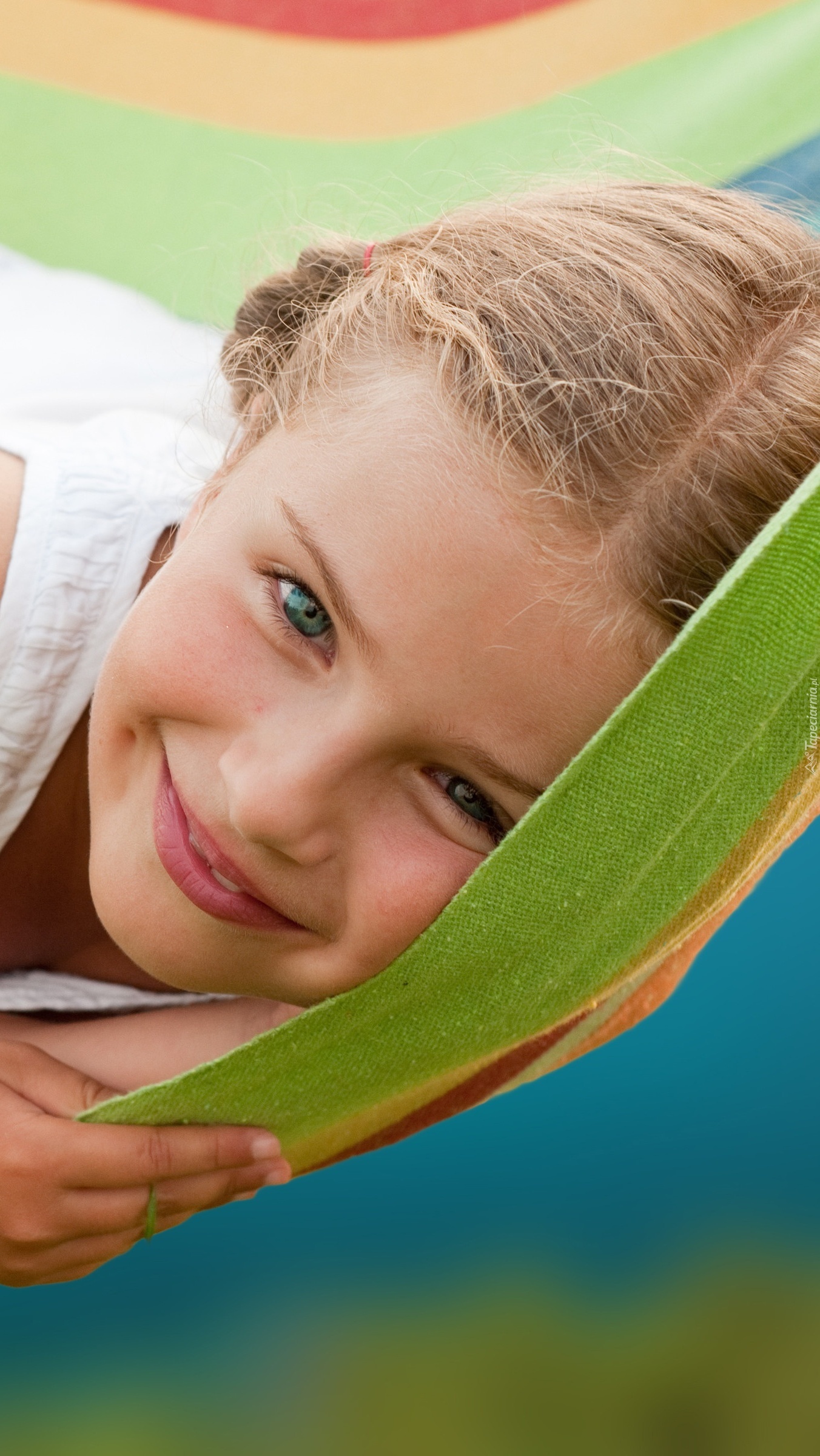 Edytor tapety: Uśmiechnięta dziewczynka na hamaku