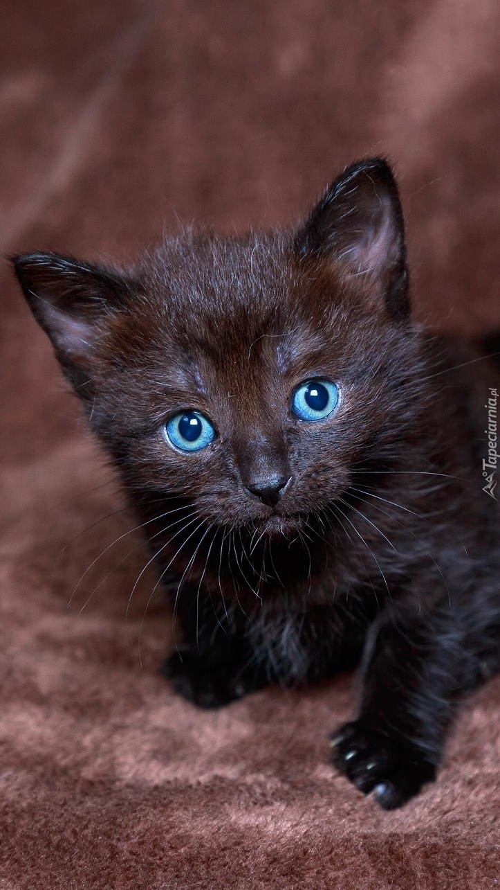Edytor tapety: Mały czarny kot o niebieskich oczach