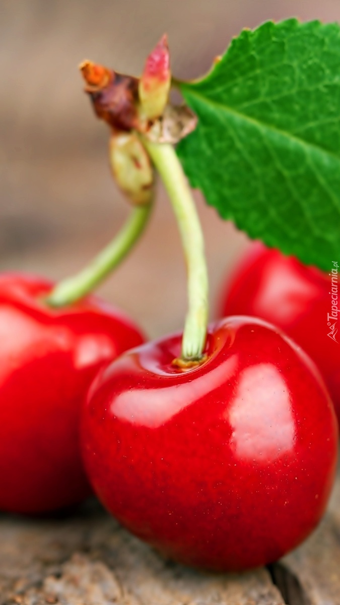 Edytor tapety: Trzy czereśnie z listkiem