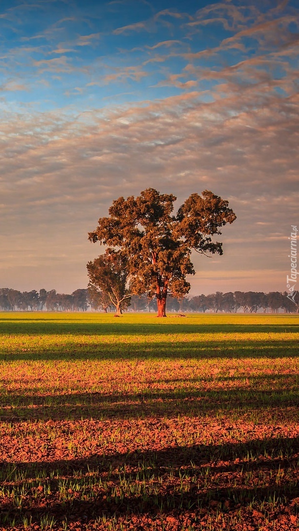 Edytor tapety: Drzewo na polu w słońcu